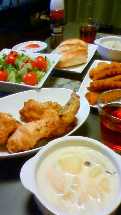 今日はケンチキとアルコールフリーのシャンパン、そして手作りシチューの、なんだかよくわからないクリスマスディナーになりました。